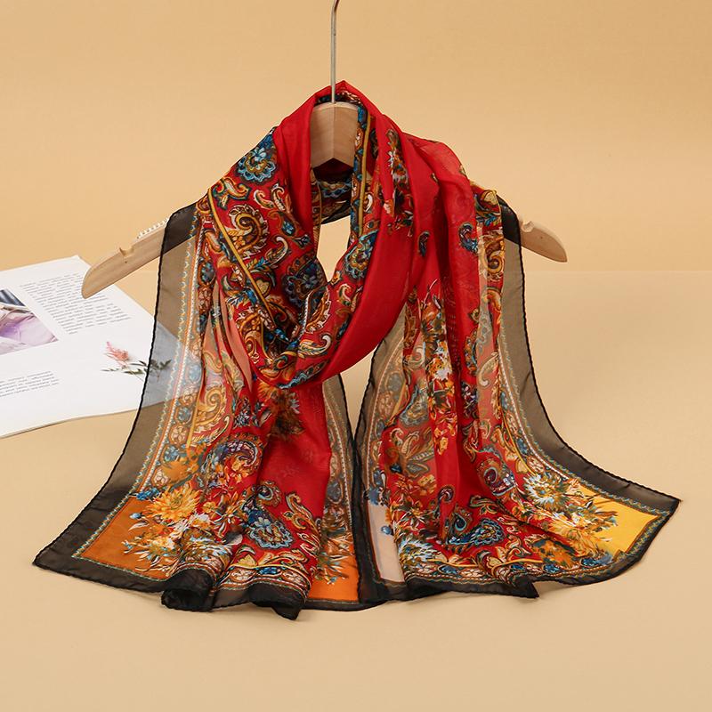New Fashion Print Design Women Silk Scarf Shawl Elegant Headscarf Convinient Bandage Hijabs Chiffon Muslim Wrap Scarves