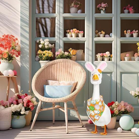 Easter Porch Goose Outfit Spring Lawn Garden Goose Clothes with Bunny Ear And Bandana for 23" Cement or Plastic Goose Statue