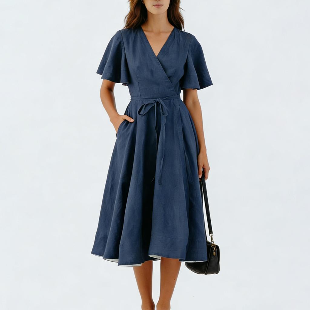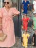 Ladies' Casual And Fashionable Color Cotton And Linen Dress