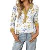 Women's Retro Street Lazy V,neck Long Sleeve Button Floral Print Pullover Top