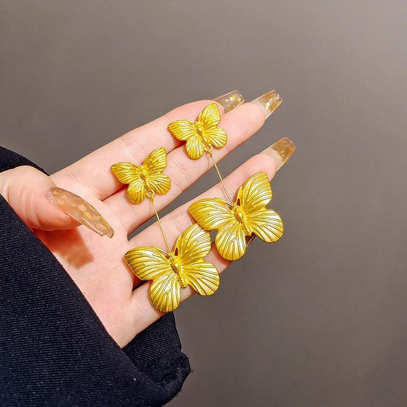 The niche design of the plain gold double butterfly earrings is exquisite, individualistic, exaggerated and high-end