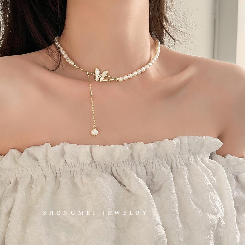 Sweet Butterfly Design Natural Freshwater Pearl 14K Gold Filled Ladies Chains Necklace Wholesale For Women Gifts