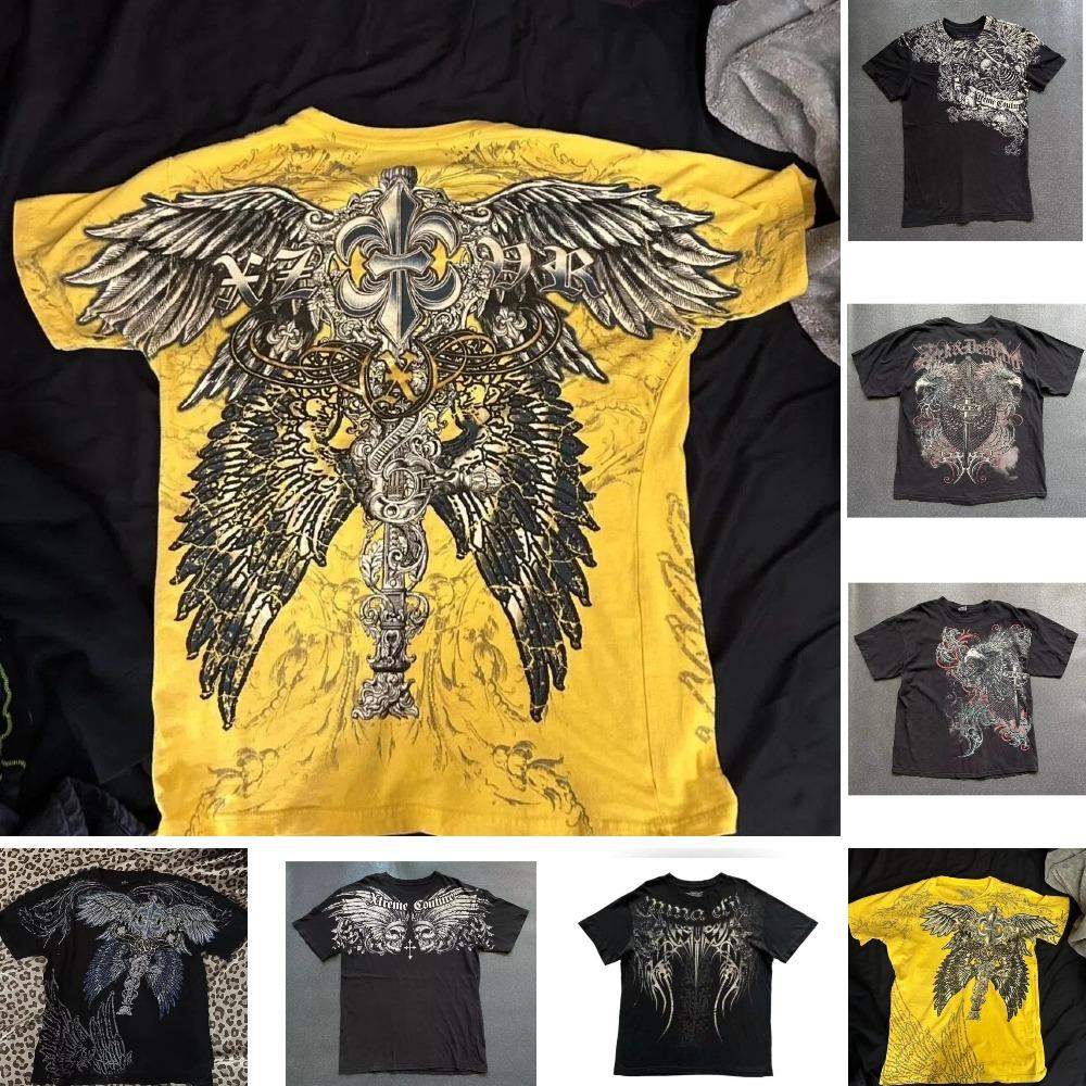 Retro Angel Wing Men Short Sleeves Harajuku High Street American Fashion T-shirt Man Women Summer Tops