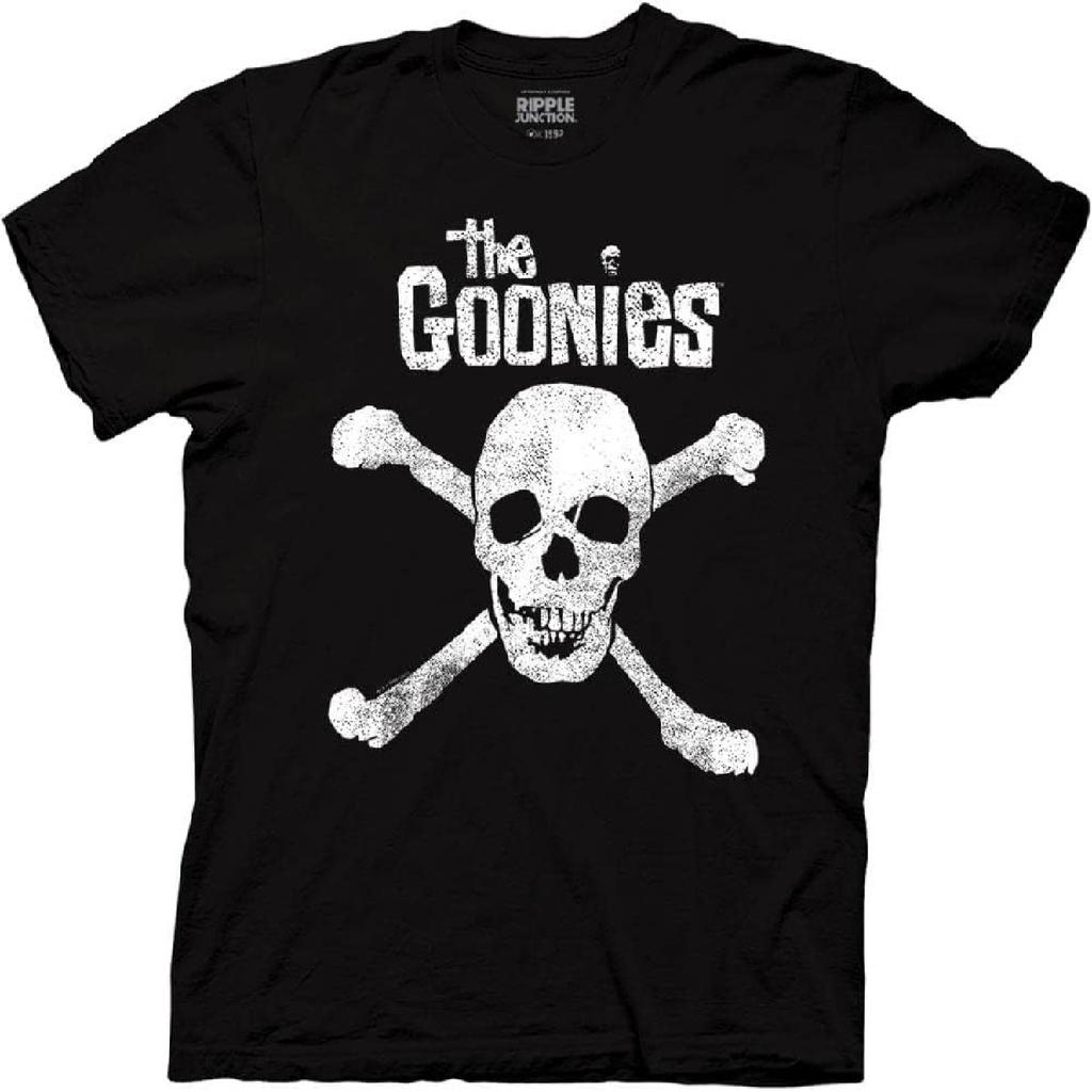 Ripple Junction The Goonies Men's Short Sleeve T-Shirt Movie Logo with Skull and Cross Bones Distressed Officially Licensed