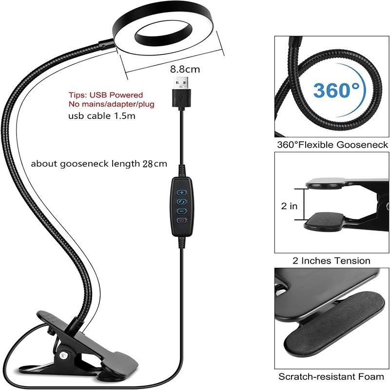 Pevná svorka a flexibilná lampa s husím krkom: Svorka s penou odolnou proti poškriabaniu sa otvára až do 5 cm, čo umožňuje dokonalé pripnutie svietidla na pracovný stôl, počítačový stôl, čelo postele, nočný stolík, šijací stôl, rôzne dosky a police atď.; 360° ohybný husí krk umožňuje klipové svetlo ohýbať do akýchkoľvek uhlov, ktoré potrebujeme; Poďme si užiť úpravu fotiek, čítanie pri posteli, štúdium na internáte, maľovanie, kreslenie, hranie na klavíri, pletenie vlny a všetky druhy ručných prác!