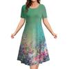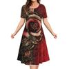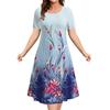 Women‘s Dresses 3d Flowers Pattern Short Sleeve Tops Casual Fashion A-Line Skirt Summer Lady Oversized Vacation Dresses