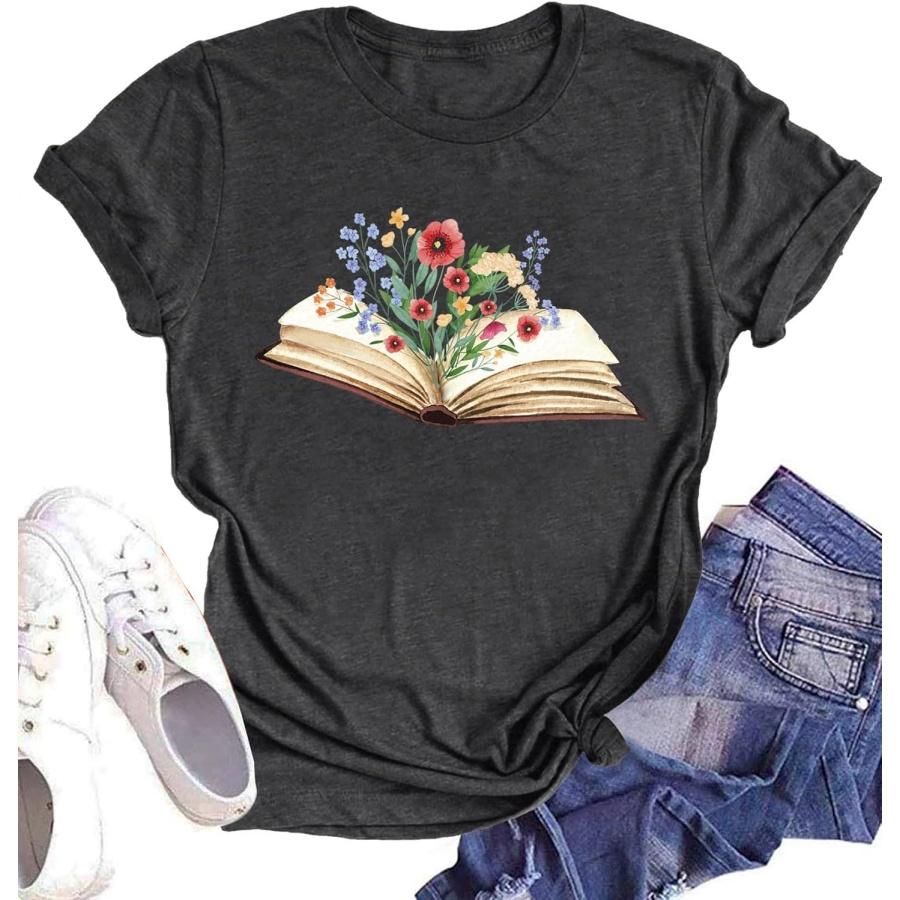 Book Lover Shirts Women Teacher T Shirt Funny Wildflowers Book Reading Graphic Casual Teacher Gift Tops