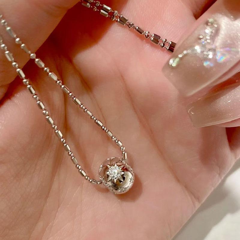 Classic Glossy Round Bead inlay Diamond Star Necklace silver Inspired Sparkling Pendant Clavicle Chain Wedding Gift