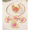 Exclusive geometric round open ring bracelet stud earrings collar set
