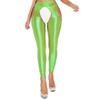 Dámske lesklé legíny s vysokým pásom, výrezmi na stehnách a otvoreným rozkrokom, dierované strečové jogové nohavice na cvičenie, klubové oblečenie
