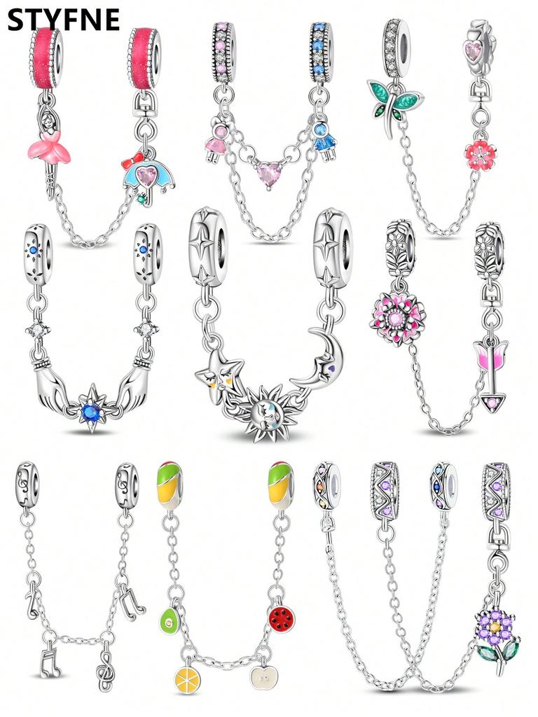 Charms Plata Copper Colors Summer Flower Fruit Safety Chains Beads Pendant For Original Bracelet For Women Diy Jewelry Love Gift