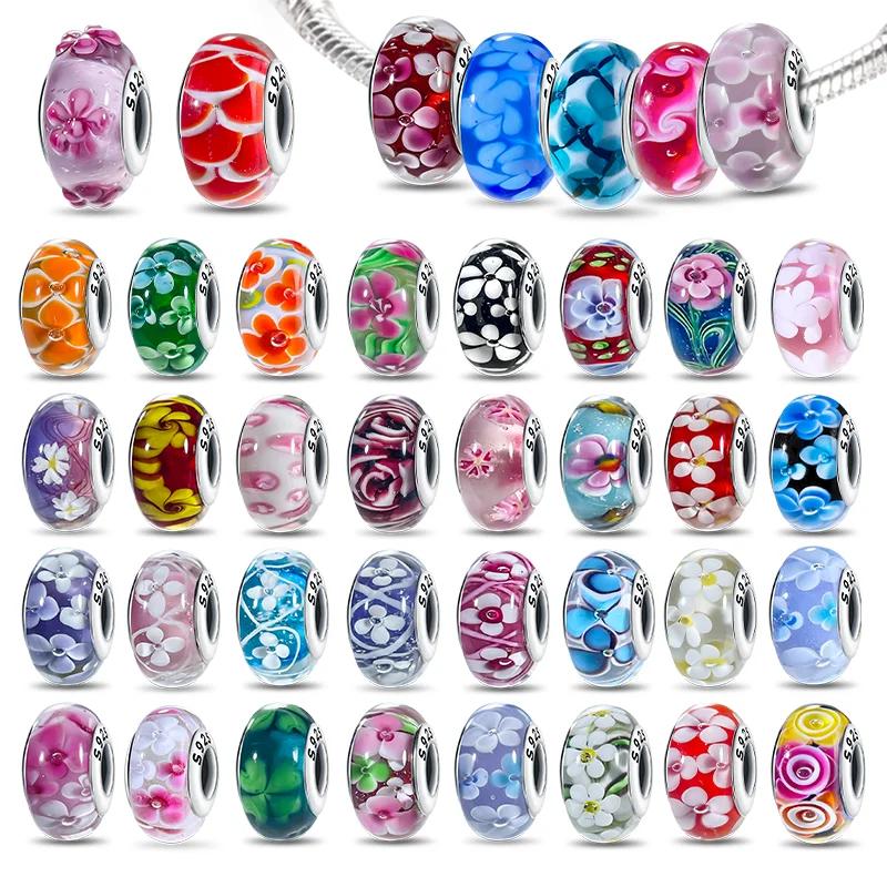 Copper Colorful Flower Series Murano Glass Beads Luxury Charm Fit Original Braceletdiy Fine Jewelry Gift For Women