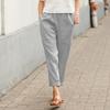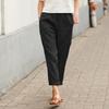 Women's Linen Blend High Waist Cropped Pants Elastic Waist Loose Fit Casual Tapered Trousers