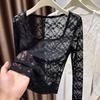 Ice Silk Mesh Sun Protection Blouse T-shirt for Women New Pure Lust Sexy Hottie Hollow Tulle Lace Top