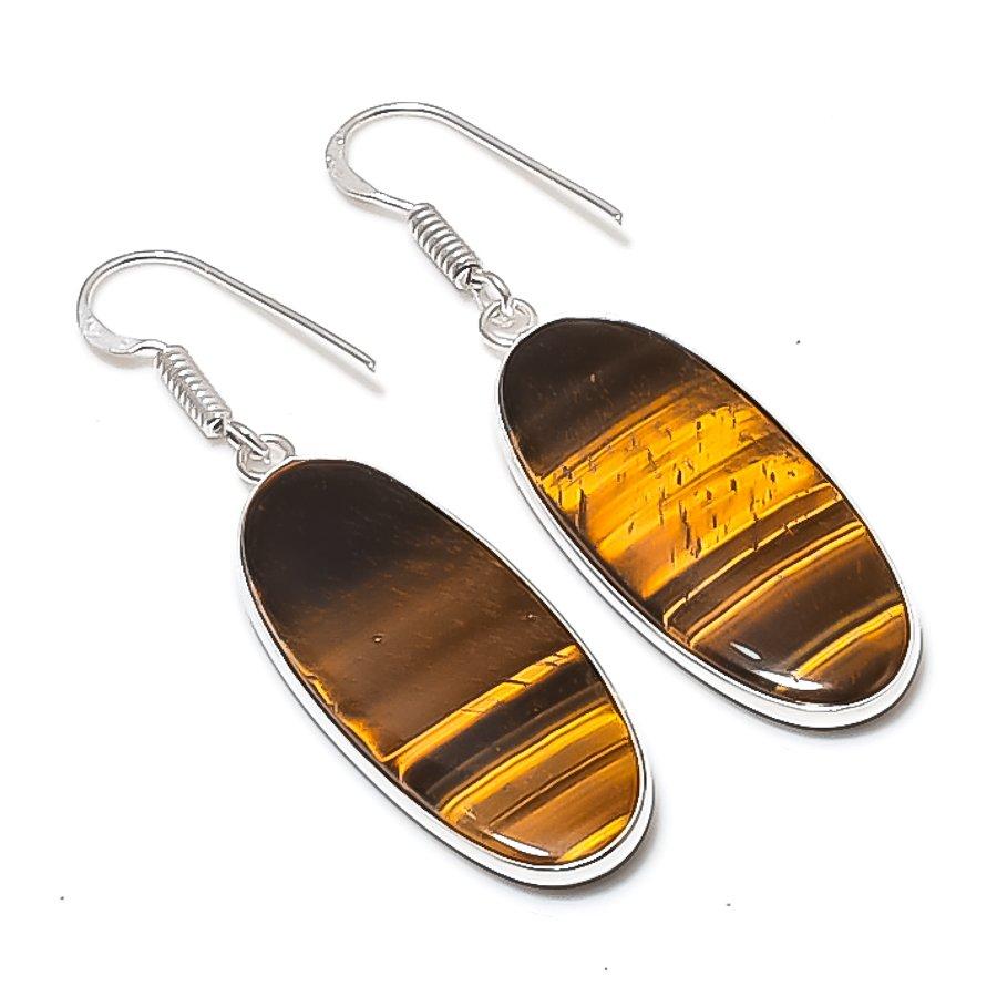 Natural Tiger Eye Gemstone 925 Sterling Silver Jewelry Earring 2.01" AEE-11055