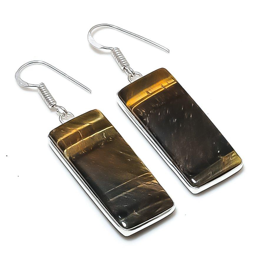 Natural Tiger Eye Gemstone 925 Sterling Silver Jewelry Earring 2.01" AEE-11101