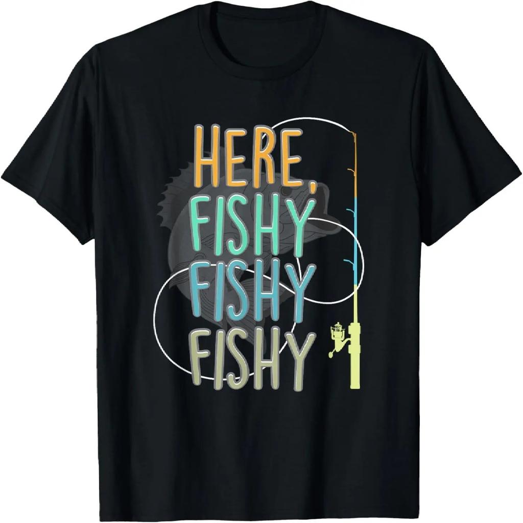 Here Fishy Fisherman Fishing Rod Fish Fishing Saying Angler T-Shirt