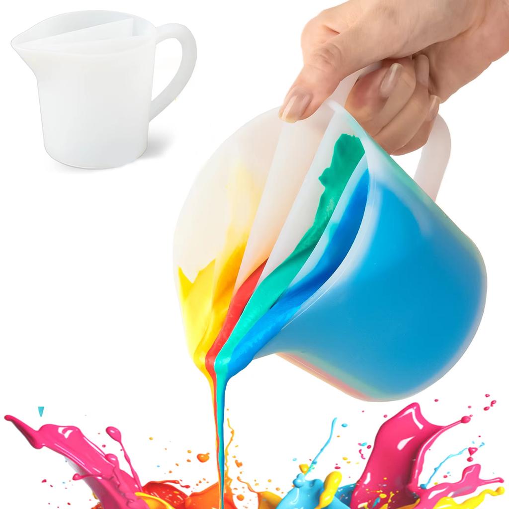 Fluid Art Silicone Split Pouring Cup 500ML with Dividers Reusable Mixing Cup for Epoxy Resin Acrylic Paint DIY Handmade Tool