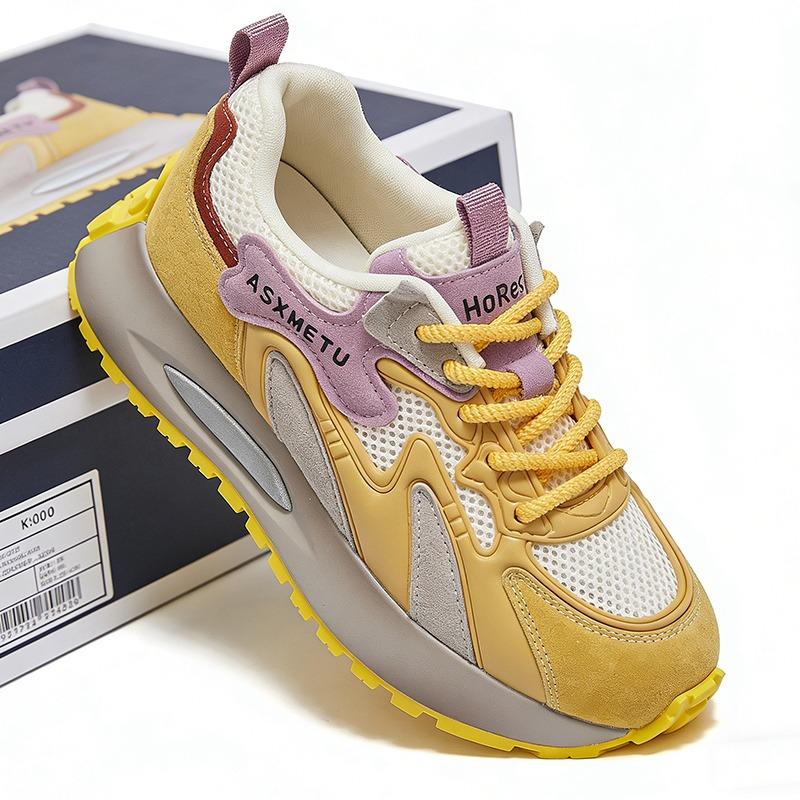 2026 Spring Summer Fashion Sneakers Women Mesh Shoes Thick Sole 5cm Soft Comfort Brand Ladies Yellow Shoes for Daily Wear