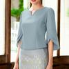 ZANZEA Women Casual V-Neck Solid Color 3/4 Sleeve Elegant Blouse