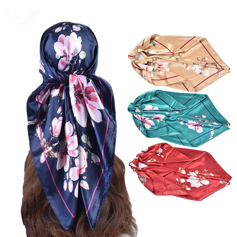 Head Scarf Women Luxury Square 90*90Cm Silk Foulard Satin Bandana Cheveux Soft Neckerchief Hijab Hair Scarves Ladies