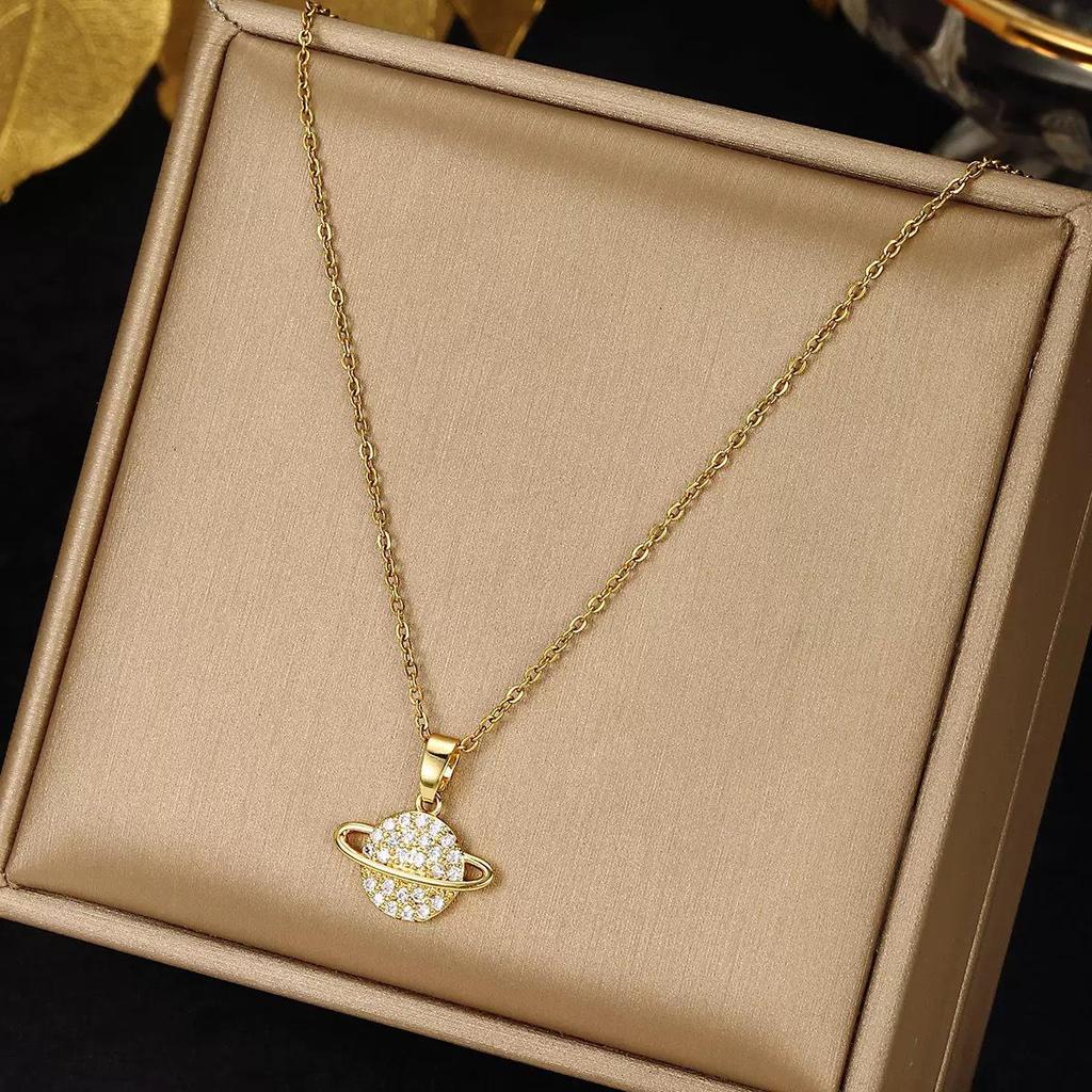 Saturn Planet Full Diamond Titanium Steel Necklace: Women's Luxury Clavicle Chain