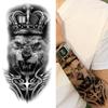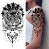 Crown Lion Flower Dočasné tetovanie Pre ženy Muži Deti Chlapec Čierny Tiger Nálepka na tetovanie kostry Falošný kompas Tetovanie s polovičným rukávom