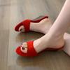 Slope heel open-toed slippers summer wear temperament high heels French beautiful cool slippers
