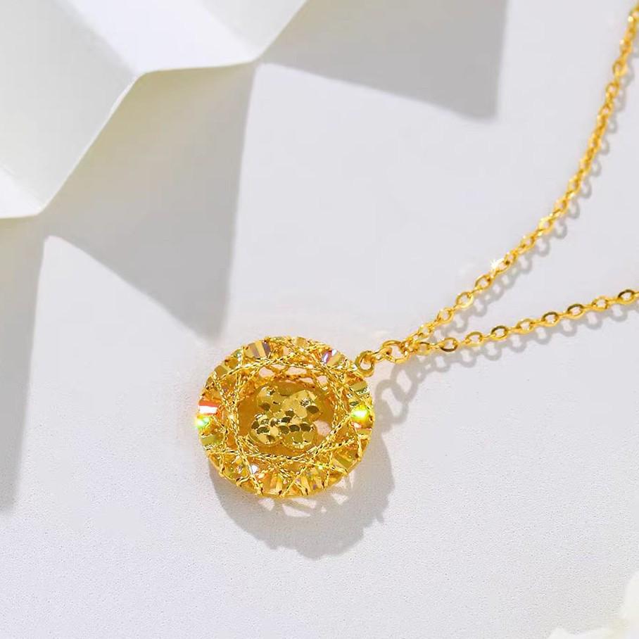 Gold Crushed Ice Dream Catcher Four-Leaf Clover Necklace - Imitation Vietnamese Sand Gold Clover Pendant