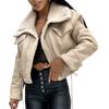 Dámska zimná bunda z umelej kože s dlhým rukávom, klopou, flísovou podšívkou a ľanovým kabátom, zapínaná na zips, motorkárska bunda, teplý sherpa kabát, vrchné oblečenie