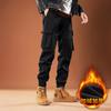 New Velvet Casual Pants Tied Feet Trendy Overalls Men's Handsome Multi-pocket Pants