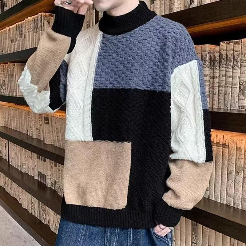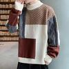 Men's Plus Size Color Block Sweater - Loose Fit, Korean Style, Round Neck Pullover for Autumn and Winter