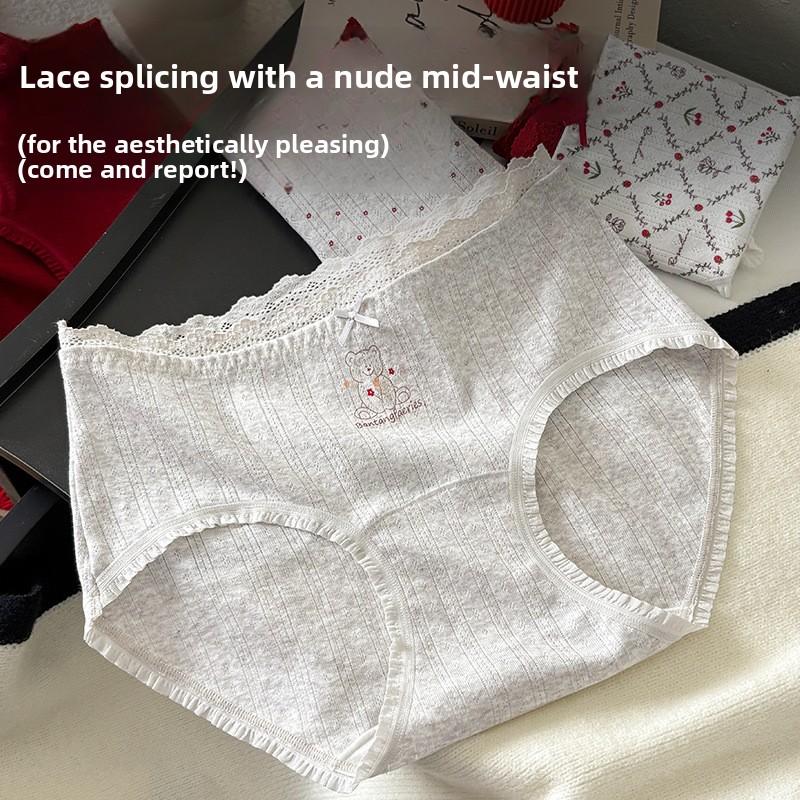 Girl Autumn and Winter Lovely Pure Cotton 10A Antibacterial No Trace Breathable Middle Waist Triangle Briefs