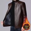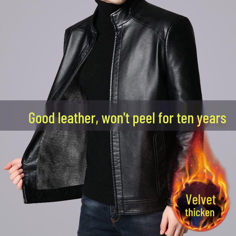 Men's Leather Jacket for Mid-Aged & Elderly: Fleece-Lined, Thickened, Windproof, Detachable Fur Collar, Winter Warmth for Dad.