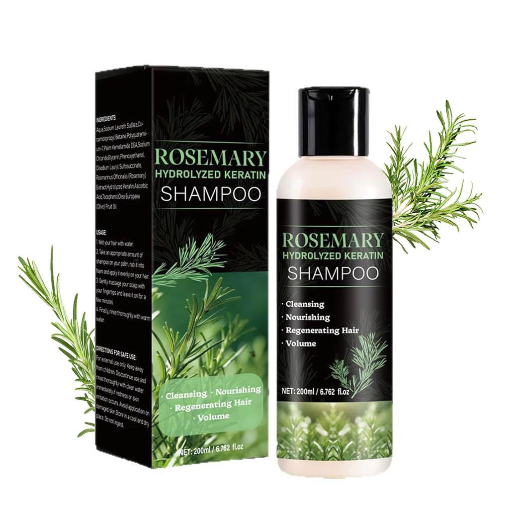 Bio šampón s rozmarínom na vlasy - s hydrolyzovaným keratínom, zahusťujúci, dodávajúci objem, redukuje lámanie & dodáva lesk, 200 ml