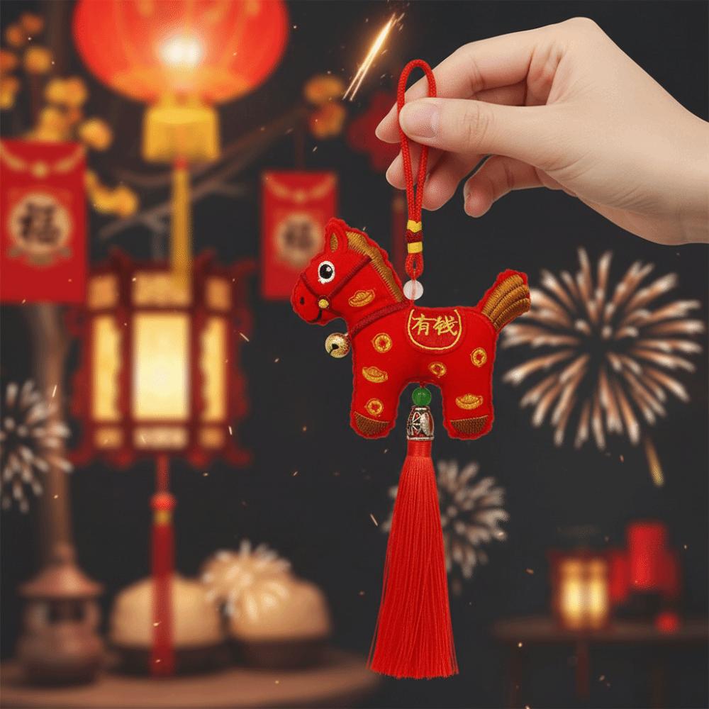 Chinese Style Pony Embroidered Pendant Spring Festival Zodiac Mascot Horse Hanging Decoration Funny Keychain