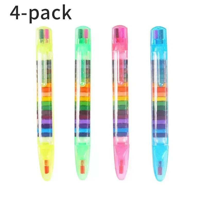 20-Color Interchangeable Core Crayons (4pc) - Oil Painting & Washable Paintbrush 2-in-1, Ideal for Students, Fancy Graffiti, Ric
