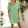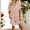 Fashionable Women's Casual Color Buttoned Mid-length Short-sleeved Loose Dress
