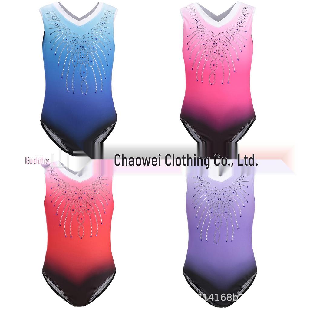 High Elastic Rhinestone Gradient Gymnastics Leotard for Kids - Dance and Performance Wear