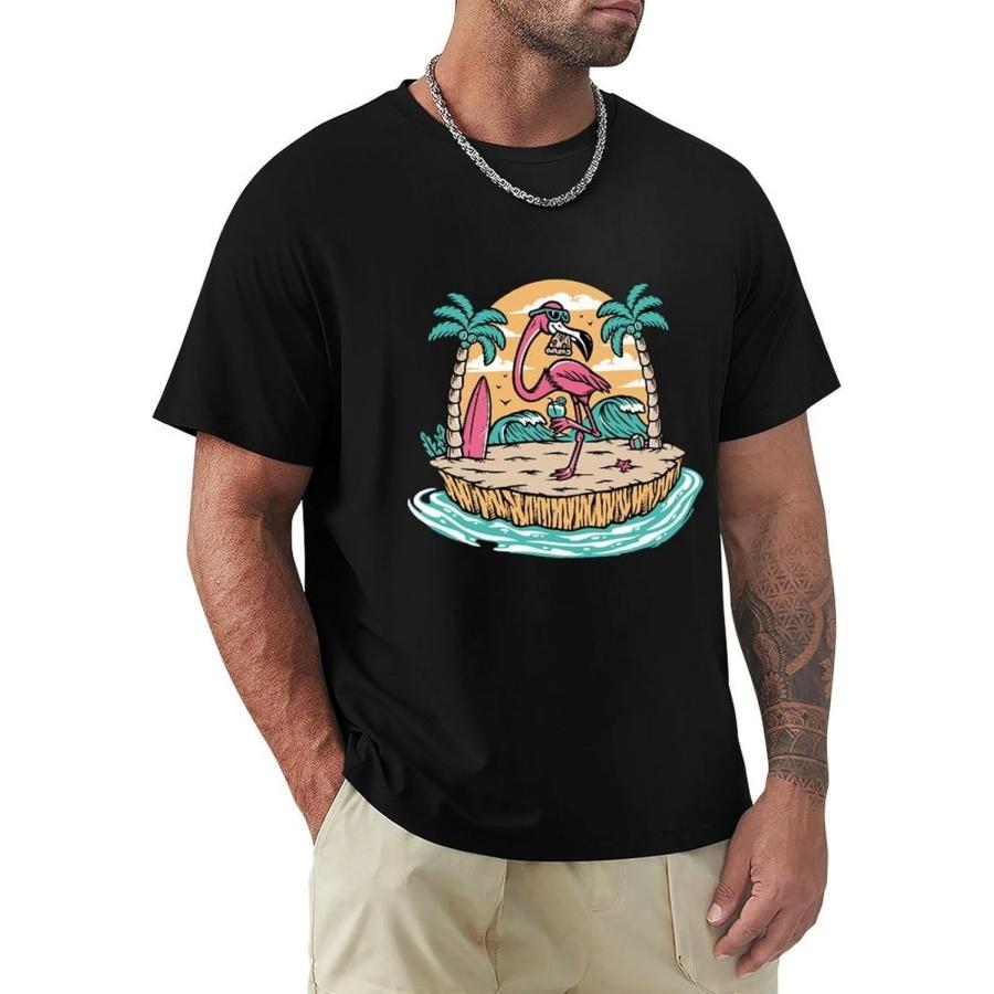 Mens Graphic T-Shirts Beach Summer Flamingo Print Comfort Cotton T Shirts Fashion Men's Short Sleeve Shirts Casual Tshirts