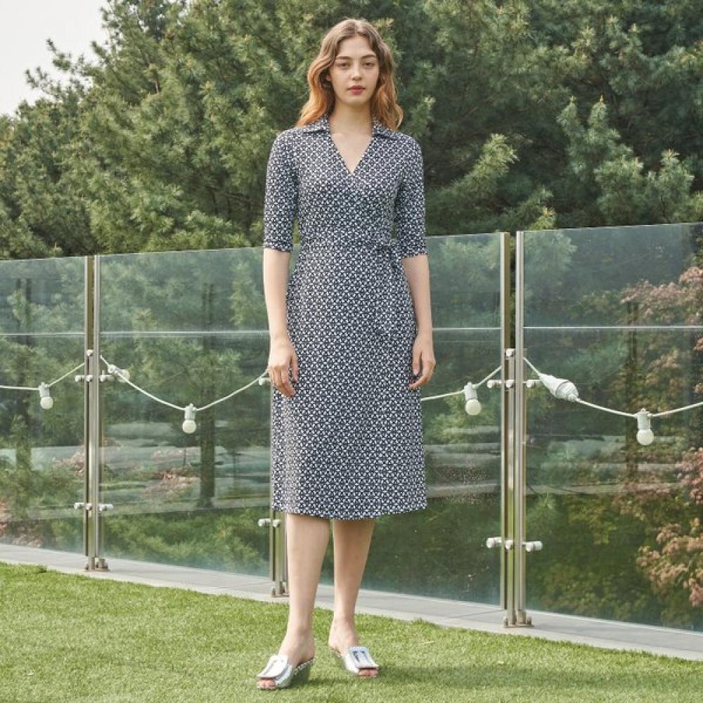 The Lipbbam Creora DeRochi Collar 3/4 Sleeve Long Wrap Dress LDM11CO01 offers a tailored yet comfortable fit. Its signature flare style makes it versatile, suitable for both casual and formal occasions.