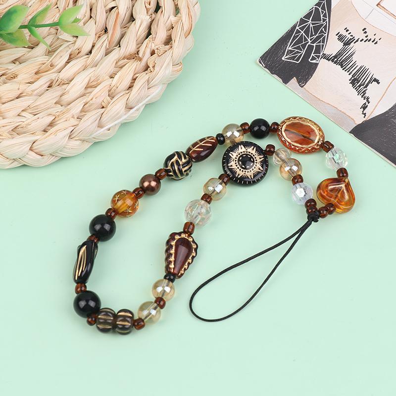 Retro Chinese Style Bead Hand-Held Chain Wrist Short Hanging Rope Phone Case Car Keychain Bag Pendant For Women