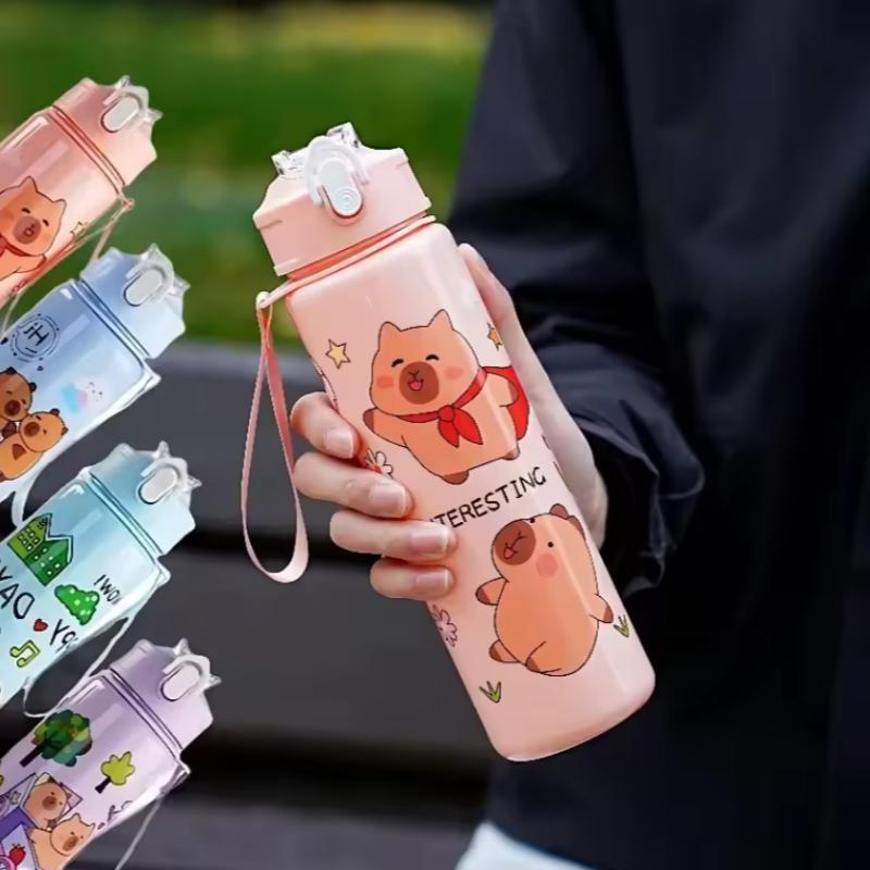 750ml Capybara Water Bottle For Kids Water Sippy Cup With Silicone Straw Leakproof Plastic Water Bottles Summer Kids Water Cup