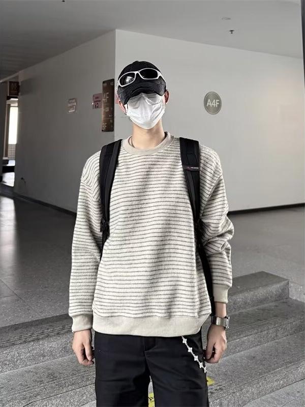 Unisex Oversized Striped Crewneck Sweatshirt - Trendy Autumn/Winter Couple's and Student Class Top
