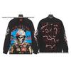 This retro-inspired hoodie is perfect for adding an edge to your autumn and winter streetwear collection. Crafted from pure cotton, it offers a light yet comfortable feel ideal for layering. The design features a stand neckline and long sleeves, providing a unique twist on classic hoodie styles. With its loose fit and striking skull rock print decoration, this hoodie combines comfort with a bold statement.