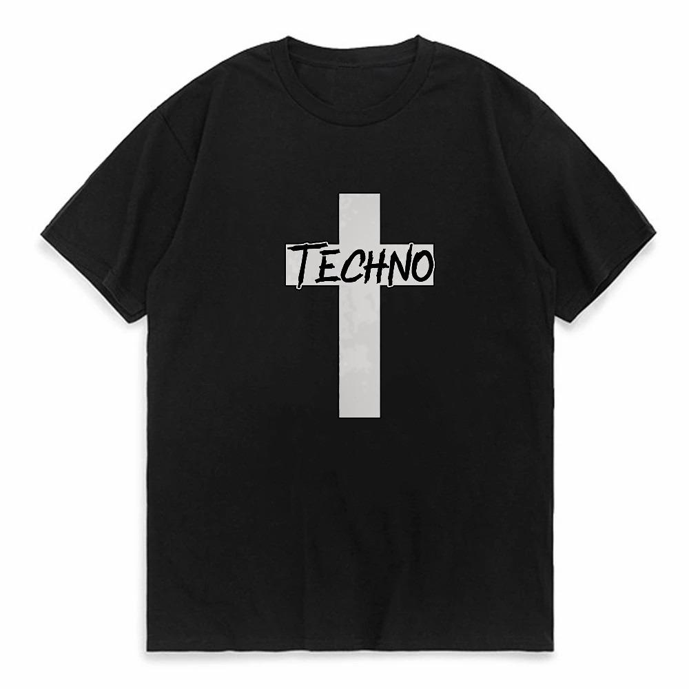 TECHNO CROSS PRINTED T SHIRT men women Short Sleeve tShirt Clothing Trend Casual Slim Fit Summer o neck Tops Tees fashion tshirt