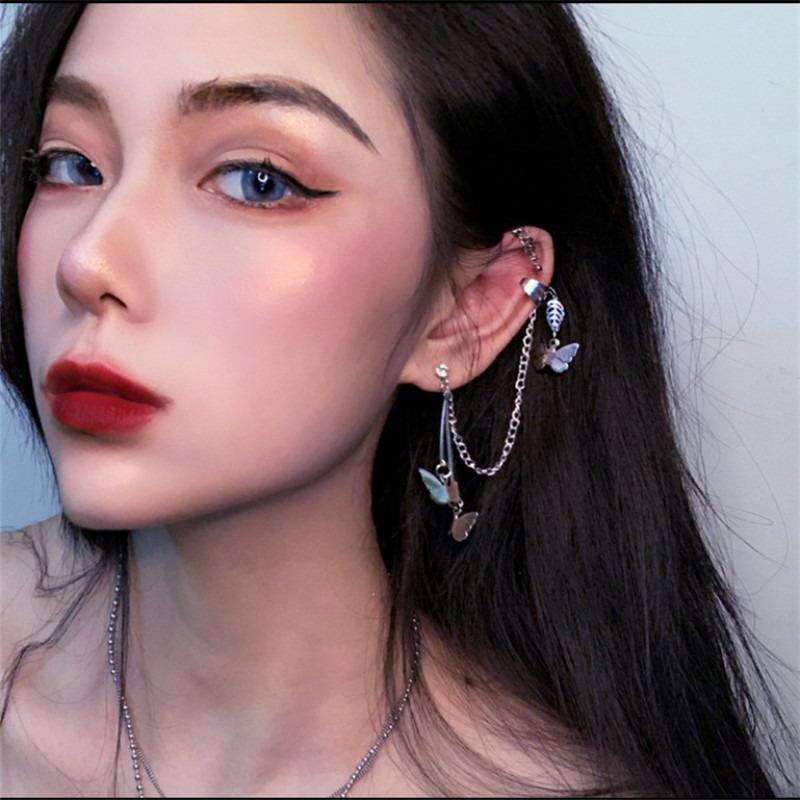 Butterflies Earrings Cartilage Butterflies Earrings Punk Silver Chain Butterfly Earrings Cartilage Clip Fashion for Women