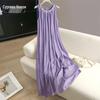 Spring and summer new European and American women's French long dress chiffon suspender blue high waist temperament printed dress
