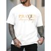 European sizes [Summer Fashion, Prayer Quote T-Shirt] Plus Size Men's Casual T-Shirt - "Prayer Changes Things" Quote, Geometric Pattern, Round Neck