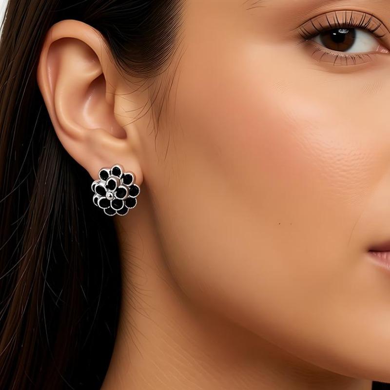 Black Awn Jewelry Black Jewelry Black Stone Flower Hoop Earrings